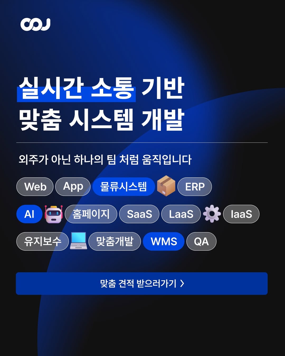 아이블이 기존 외주 서비스와 가장 다른 점은, 해외 인력이나 외주 인력 없이 국내 전담팀으로만 운영된다는 사실이에요. 요새 노코드툴이나 단기 개발, 외국인 인력을 쓰는 개발 회사가 많은데요, 소통 과정에서 어려움을 겪거나 서비스의 고도화가 쉽지 않죠. 아이블은 CTO급 국내 PM이 기획부터 디자인, 개발, QA까지 전 과정 참여하며 소통하고요. 전문 채널을 통해 24시간 내 커뮤니케이션이 가능하다는 사실🥳